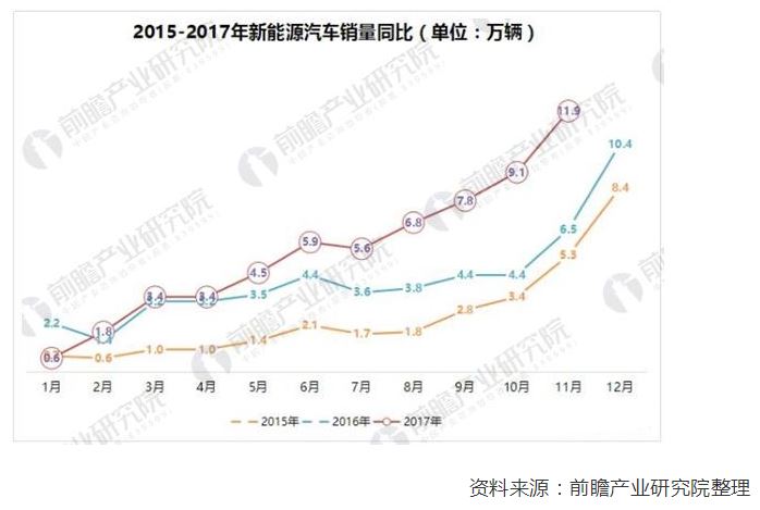 從產(chǎn)銷規(guī)模來看,我國新能源汽車在全球市場的比重已超過50%;據(jù)前瞻產(chǎn)業(yè)研究院統(tǒng)計(jì)數(shù)據(jù)顯示,2017年1-11月,新能源汽車產(chǎn)銷分別完成63.9萬輛和60.9萬輛,同比分別增長49.7%和51.4%。保守估計(jì),今年中國新能源汽車的產(chǎn)銷會(huì)達(dá)到70萬輛左右,截止2017年保有量將會(huì)突破170萬輛左右。