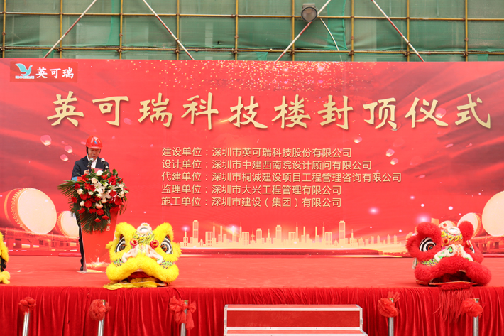 2019年11月26日上午英可瑞科技樓封頂儀式順利舉行。英可瑞董事長尹偉攜公司高層、員工代表參加了封頂儀式。